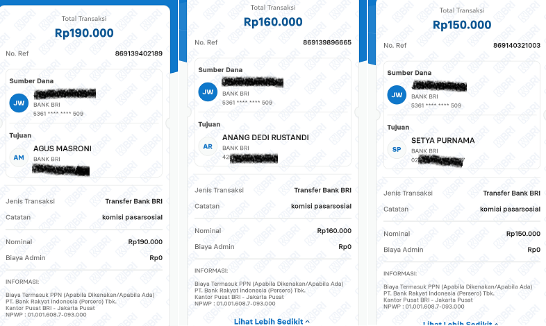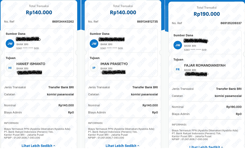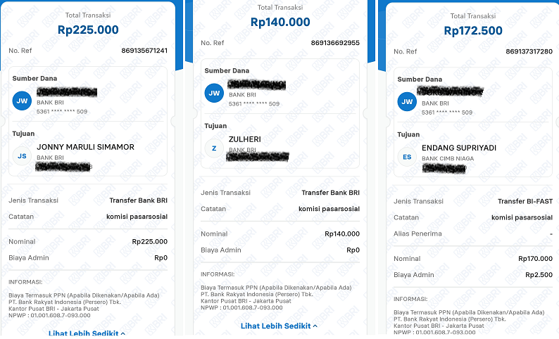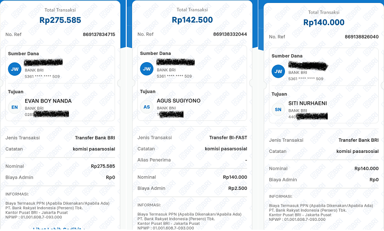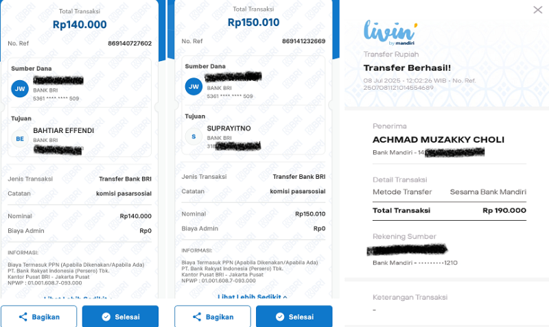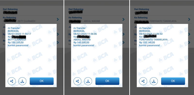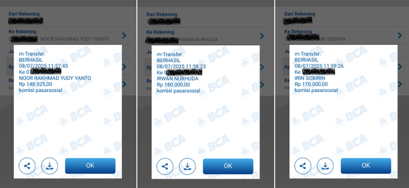 Berikut ini adalah beberapa Bukti Pembayaran Pasarsosial pada bulan Juli 2025 (Dibawah ini hanya beberapa saja). Cek rekening masing masing :