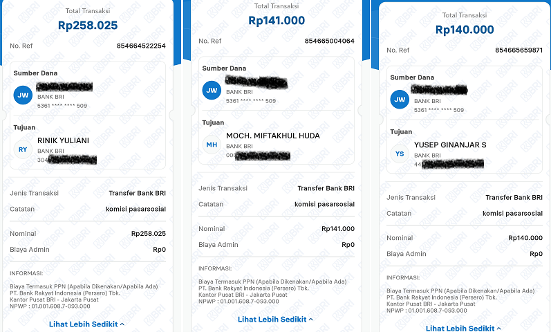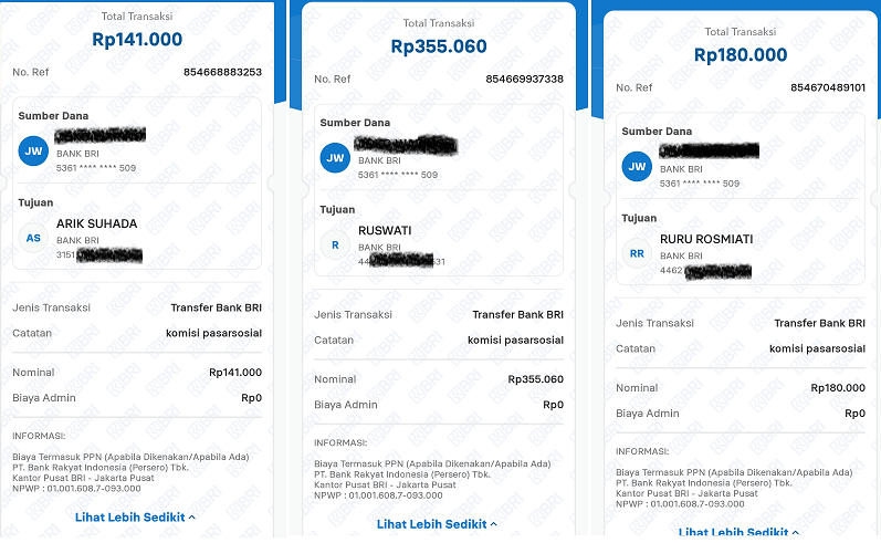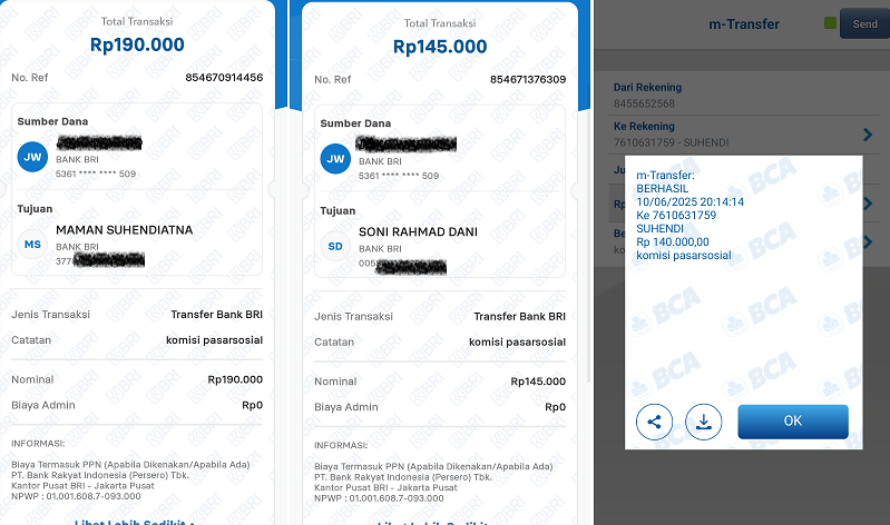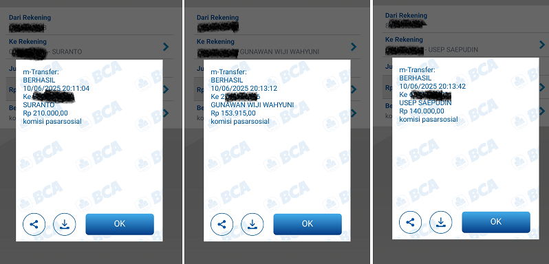 Berikut ini adalah beberapa Bukti Pembayaran Pasarsosial pada bulan Juni 2025 (Dibawah ini hanya beberapa saja). Cek rekening masing masing :